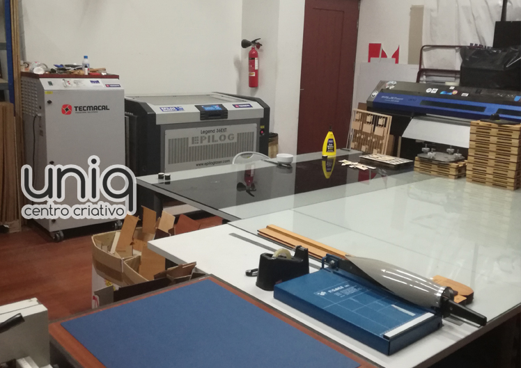 Unidade de showroom, atendimento e prestação de serviços rápidos de impressão, estampagem e personalização.